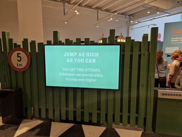 The jump test asked you (as a group) to jump on the same spot to measure how high you can jump. After offering a tip to jump higher, there was an opportunity to try again.